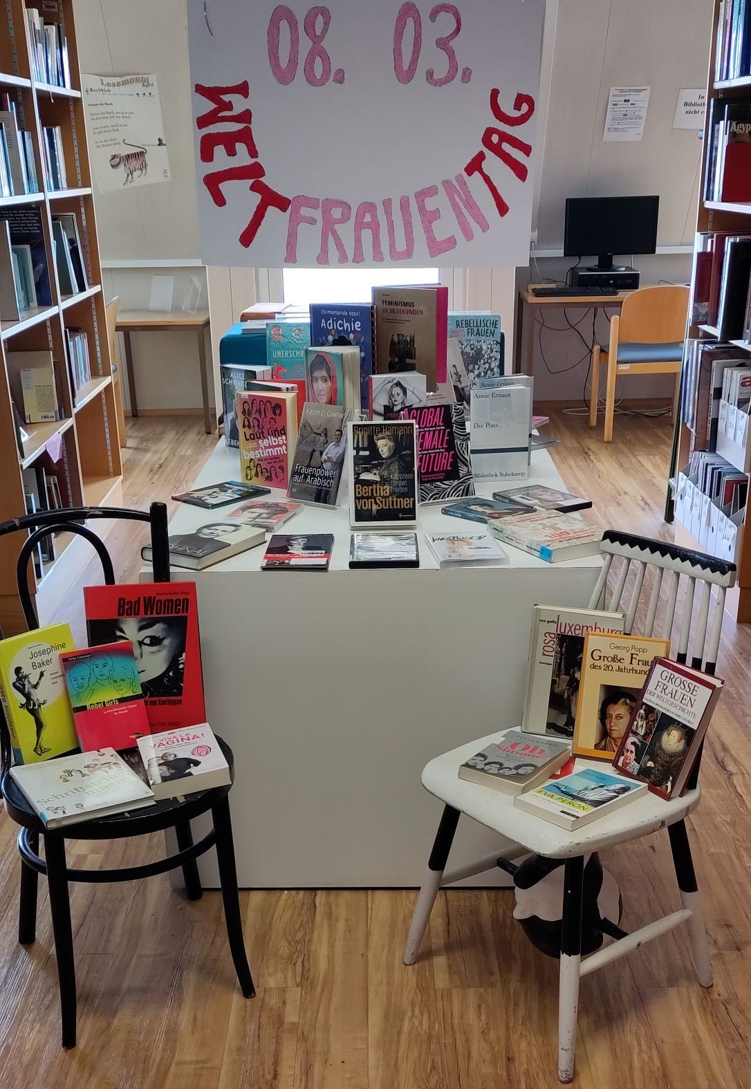 Passend dazu gibt es in unserer Schulbibliothek eine feine Auswahl an tollen Büchern über und von Frauen.